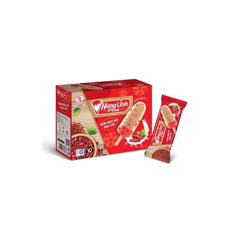 Kem Đậu xanh gạo lứt HL Plus H10 (hộp). Kem Hùng Linh Que Đậu xanh gạo lứt được làm hoàn toàn từ sữa tươi sạch nguyên chất kết hợp cùng nguyên liệu tự nhiên đậu xanh tạo ra sản phẩm có lớp kem đậu xanh mềm mịn từ sữa tươi, đậu xanh tự nhiên cùng nước cốt dừa thơm ngậy đem đến vị ngon hấp dẫn cho mọi lứa tuổi.
