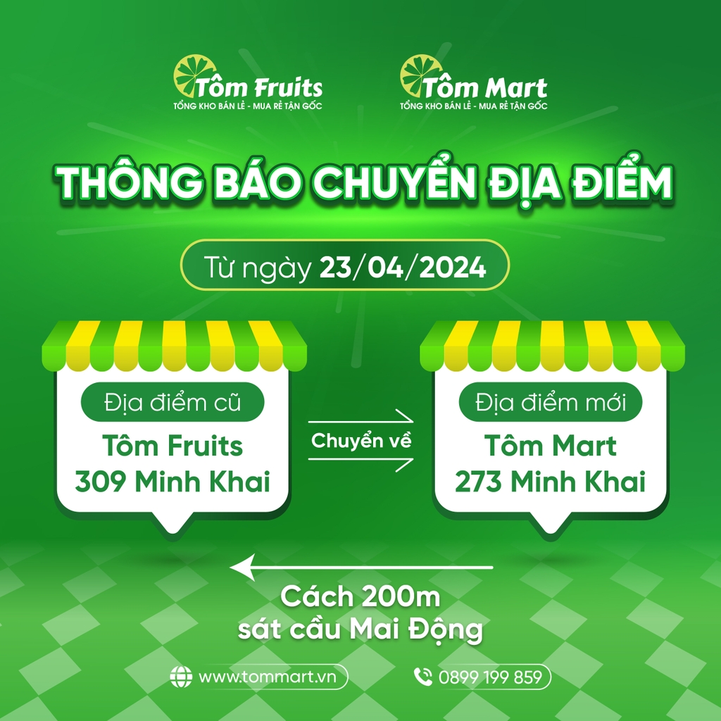 Thông báo thay đổi địa điểm cửa hàng Tôm Fruits Minh Khai